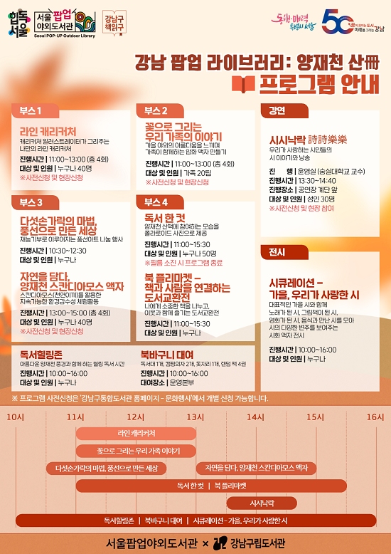 µµ½É ¼Ó Áö¿ªÁֹεéÀÇ ´ëÇ¥Àû Èú¸µ ¸í¼ÒÀÎ ¾çÀçõ¿¡¼ °³ÃֵǴ À̹ø °³² ÆË¾÷ ¶óÀ̺귯¸®´Â ¡âµ¶¼Èú¸µÁ¸ ¡â°¿¬ ¹× üÇèÇÁ·Î±×·¥ ¡â½ÃÅ¥·¹ÀÌ¼Ç Àü½Ã µî ´Ùä·Î¿î ÇÁ·Î±×·¥À» ¸¶·ÃÇÏ¿´´Ù. ´©±¸³ª ÀÚÀ¯·Ó°Ô ÀÐÀ» ¼ö ÀÖ´Â µ¶¼Á¸¿¡ ´Ù¾çÇÑ À帣ÀÇ µµ¼¸¦ ºñÄ¡Çϰí, µ¶¼ ÆíÀǸ¦ À§ÇÑ ¹°Ç°ÀÌ ´ã±ä ºÏ¹Ù±¸´Ï¸¦ ´ë¿©ÇÏ¿© ¹æ¹®°´µé¿¡°Ô ÀÚ¿¬ ¼Ó »õ·Î¿î µ¶¼ °ø°£À» Á¦°øÇÒ ¿¹Á¤ÀÌ´Ù.