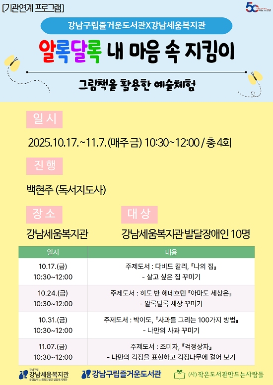 ÀÌ ¿Ü, Áñ°Å¿îµµ¼°ü¿¡¼ ¿î¿µÇϰí ÀÖ´Â ÇÁ·Î±×·¥ °ü·Ã ÀÚ¼¼ÇÑ ³»¿ëÀº ȨÆäÀÌÁö¸¦ (https://library.gangnam.go.kr/jgwlib) ÅëÇØ È®ÀÎÇÒ ¼ö ÀÖ´Ù. < ÀúÀÛ±ÇÀÚ © °³²½Å¹® ¹«´ÜÀüÀç ¹× Àç¹èÆ÷±ÝÁö >