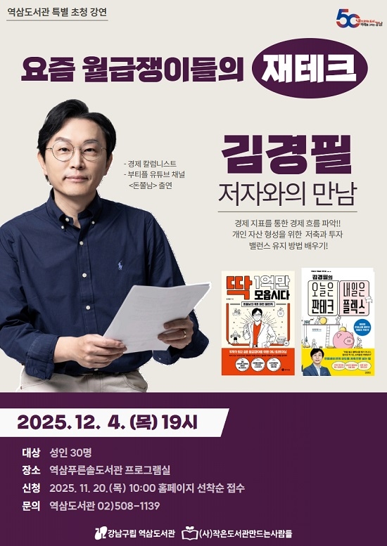 °³²±¸¸³¿ª»ïµµ¼°üÀº 12¿ù 4ÀÏ(¸ñ) ¿ÀÈÄ 7½Ã, ‘¿äÁò ¿ù±ÞÀïÀ̵éÀÇ ÀçÅ×Å©’¶ó´Â ÁÖÁ¦·Î ±è°æÇÊ °æÁ¦ Ä®·³´Ï½ºÆ®¸¦ ÃÊÃ»ÇØ Ưº° °¿¬À» °³ÃÖÇÑ´Ù. Àú¼ ¡ºµü 1¾ï¸¸ ¸ðÀ¾½Ã´Ù¡»ÀÇ ÀúÀÚ·Î Àß ¾Ë·ÁÁø ±è°æÇÊ Ä®·³´Ï½ºÆ®´Â À̹ø °¿¬¿¡¼ Á÷ÀåÀΰú û³âÃþÀÌ ²À ¾Ë¾Æ¾ß ÇÒ ½ÇÁúÀûÀÎ ÀçÅ×Å© Àü·«À» ½±°í ¸íÈ®ÇÏ°Ô ¼³¸íÇÒ ¿¹Á¤ÀÌ´Ù.