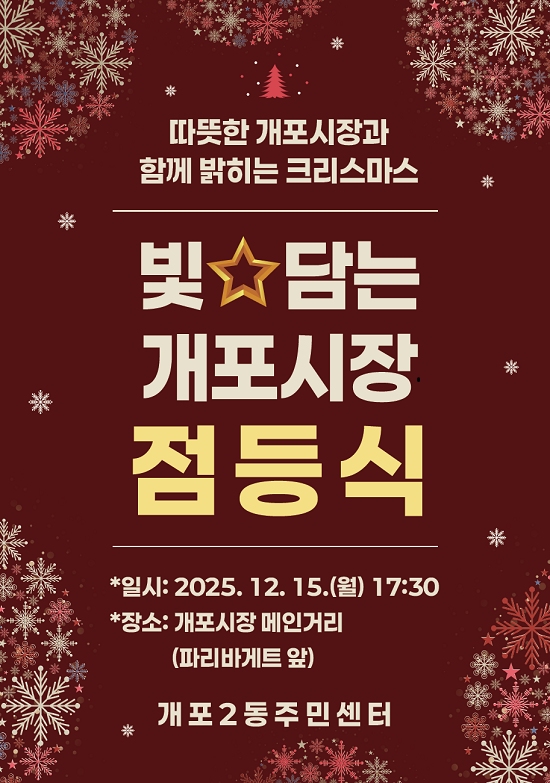 ÇÑÆí, µ¿Àº Áֹΰú »óÀÎÀÌ ÇÔ²² ¸¸µå´Â µû¶æÇÏ°í »ý±â ÀÖ´Â ¿¬¸»¿¬½Ã ºÐÀ§±â¸¦ Á¶¼ºÇϰíÀÚ °³²°³Æ÷½ÃÀå Á߽ɿ¡ Å©¸®½º¸¶½ºÆ®¸®¿Í ÇÔ²² »õÇØ¸¦ ¸ÂÀÌÇÏ°í ½ÃÀåÀ» È«º¸ÇÏ´Â ¹®±¸°¡ ´ã±ä Á¶Çü¹°°ú Á¶¸í Àå½Ä µîÀ» ¼³Ä¡ÇÏ°í Æ÷Åä Á¸À» ²Ù¸ì´Ù.