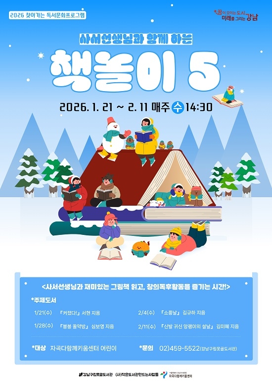‘»ç¼¼±»ý´Ô°ú ÇÔ²² Çϴ å³îÀÌ’ ÇÁ·Î±×·¥Àº ÀÚ°î´ÙÇÔ²²Å°¿ò¼¾ÅÍ ¼Ò¼Ó ¾î¸°ÀÌ 10¸íÀ» ´ë»óÀ¸·Î ÁøÇàµÈ´Ù. ¸Åȸ ¡ºÄ¿Á³´Ù!¡», ¡ººØºØ ²Ü¾à¹æ¡», ¡º¼Òdz³¯¡», ¡º½Å¹ß ±Í½Å ¾Ó±ªÀÌÀÇ ¼³³¯¡» µî »ç¼°¡ ¼±Á¤ÇÑ ±×¸²Ã¥À» ÇÔ²² Àаí ÀÚÀ¯·Ó°Ô À̾߱⠳ª´©´Â ½Ã°£À» °®´Â´Ù. ±×¸²Ã¥À» ÇÔ²² ÀÐÀº ÈÄ¿¡´Â °¢ µµ¼¿Í ¿¬°èµÈ âÀÇÀûÀÎ µ¶ÈÄȰµ¿À» º´ÇàÇÏ¿© ÇÁ·Î±×·¥¿¡ Âü¿©ÇÑ ¾î¸°À̵éÀÌ ÀÚ¿¬½º·´°Ô µ¶¼¿¡ ´ëÇÑ Èï¹Ì¸¦ ´À³¥ ¼ö ÀÖµµ·Ï Áö¿øÇϰíÀÚ ÇÑ´Ù.