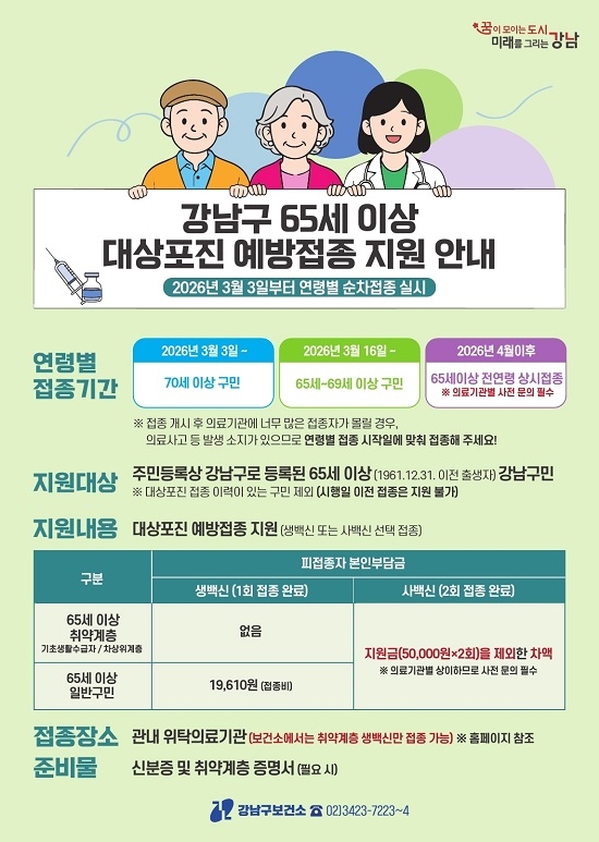 °³²±¸(±¸Ã»Àå Á¶¼º¸í)°¡ 65¼¼ ÀÌ»ó °³²±¸¹ÎÀ» ´ë»óÀ¸·Î ´ë»óÆ÷Áø ¿¹¹æÁ¢Á¾ Áö¿øÀ» È®´ëÇÑ´Ù. ±âÁ¸ ±âÃÊ»ýȰ¼ö±ÞÀÚ Áß½ÉÀÇ Áö¿øÀ» 65¼¼ ÀÌ»ó Àüü ±¸¹ÎÀ¸·Î ³ÐÈ÷°í, 3¿ù 3ÀϺÎÅÍ ¿¬·Éº° ¼øÂ÷ Á¢Á¾À» ½ÃÇàÇÑ´Ù.