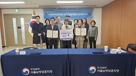 ¼¿ï³²ºÎº¸ÈÆÁöûÀº 17ÀÏ ¼¿ï³²ºÎº¸ÈÆÁöû 4Ãþ À¯ÀÏÇÑȦ¿¡¼ KT KT°³²±¤¿ªº»ºÎ¿Í 6·25ÂüÀüÀ¯°øÀÚÀÇ ¾ÈÀüÇÑ »ýȰ Áö¿øÀ» À§ÇÑ ‘AI ±â¹Ý ¿µ¿õ ¾È½É¹öư µµ¿ÍÁี ¼³Ä¡ Áö¿ø’ ¾÷¹«Çù¾àÀ» ü°áÇß´Ù°í ¹àÇû´Ù.
