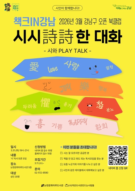 À̹ø Çà»ç´Â »çÀü µ¶¼ ¾øÀÌ ÇöÀå¿¡¼ ½Ã¸¦ ÇÔ²² ÀÐ°í ´ëȸ¦ ³ª´©´Â ¹æ½ÄÀ¸·Î ÁøÇàµÈ´Ù. µ¶¼ °æÇèÀÌ ¸¹Áö ¾ÊÀº ½Ã¹Îµµ ºÎ´ã ¾øÀÌ Âü¿©ÇÒ ¼ö ÀÖµµ·Ï ±âȹÇßÀ¸¸ç, ½Ã¸¦ ¸Å°³·Î °¢ÀÚÀÇ °¨Á¤°ú ±â¾ï, »îÀÇ °æÇèÀ» ÀÚ¿¬½º·´°Ô ³ª´©´Â µ¥ ÃÊÁ¡À» ¸ÂÃè´Ù.