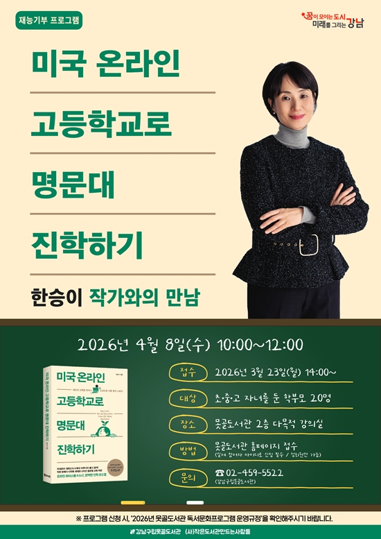 °³²±¸¸³¸ø°ñµµ¼°ü(°üÀå À̾ƿµ)Àº Á¦62ȸ µµ¼°üÁÖ°£À» ¸ÂÀÌÇÏ¿© 4¿ù 8ÀÏ ¼ö¿äÀÏ¿¡ ‘¡º¹Ì±¹ ¿Â¶óÀÎ °íµîÇб³·Î ¸í¹®´ë ÁøÇÐÇϱ⡻ ÇѽÂÀÌ ÀÛ°¡¿ÍÀÇ ¸¸³²’ ÇÁ·Î±×·¥À» ¿î¿µÇÑ´Ù.