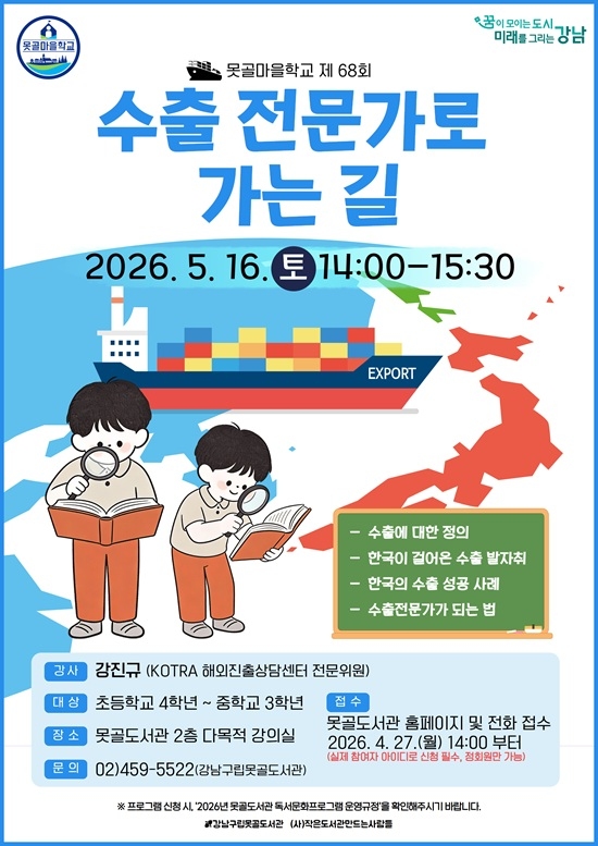º» ÇÁ·Î±×·¥Àº ÃʵîÇб³ 4ÇгâºÎÅÍ ÁßÇб³ 3ÇгâÀ» ´ë»óÀ¸·Î Çϸç, ‘¼öÃâ’À» ÁÖÁ¦·Î ‘¼öÃâÀÇ Á¤ÀÇ’, ‘Çѱ¹ÀÇ ¼öÃâ ¼ºÀå °úÁ¤’, ‘¼öÃâÀü¹®°¡°¡ µÇ´Â ¹æ¹ý’ µîÀ¸·Î ±¸¼ºµÈ´Ù. ¹«¿ª ¹× ¼öÃâ¿¡ °ü½É Àִ û¼Ò³âµé¿¡°Ô Áø·Î Ž»öÀÇ ±âȸ¸¦ Á¦°øÇÏ°í ±Û·Î¹ú ±³¿ª ȯ°æ¿¡ ´ëÇÑ ±âÃÊ ÀÌÇØ¸¦ µ½°íÀÚ ÇÑ´Ù.