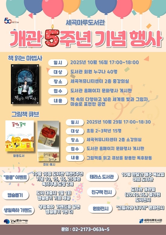 (Àç)°³²¹®ÈÀç´Ü(ÀÌ»çÀå ±èÁ¾¼·)¿¡¼ ¿î¿µÇÏ´Â ¼¼°î¸¶·çµµ¼°üÀÌ ³»´Þ °³°ü 5Áֳ⠱â³äÇà»ç¸¦ °³ÃÖÇÑ´Ù. À̹ø Çà»ç´Â µµ¼°üÀ» ´õ¿í Ä£¼÷ÇÑ °ø°£À¸·Î ¸¸µé±â À§ÇÑ ´Ù¾çÇÑ À̺¥Æ®¿Í ÇÁ·Î±×·¥À» ÁغñÇß´Ù.