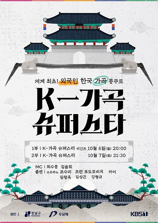º»¼± ¹«´ë¿¡¼´Â ¿Ü±¹ÀÎ ¼º¾Ç°¡µéÀÌ ¡´±×¸®¿î ±Ý°»ê¡µ, ¡´º¸¸®¹ç¡µ, ¡´¾Æ¸®¾Æ¸®¶û¡µ µî Çѱ¹ÀÇ ´ëÇ¥ °¡°îÀ» ÀڽŸ¸ÀÇ ÇØ¼®°ú °¨¼ºÀ¸·Î Çѱ¹¾î °¡Ã¢À» ÅëÇØ ¼±º¸ÀδÙ. ¹è¿ì ÃÖ¼öÁ¾ÀÌ »çȸ¸¦ ¸Ã°í, ¼¼°èÀûÀÎ ¼ÒÇÁ¶ó³ë Á¶¼ö¹Ì°¡ ½É»çÀ§¿øÀåÀ¸·Î Âü¿©ÇØ Æ¯º°°ø¿¬µµ ¼±º¸ÀδÙ. À̹ø º»¼±Àº Àü¼® ¹«·á·Î °³¹æµÅ ´©±¸³ª ÇöÀå¿¡¼ °¨µ¿À» ÇÔ²²ÇÒ ¼ö ÀÖ´Ù. 10¿ù 7ÀÏ ¹ã 9½Ã 30ºÐ KBS 1TV¸¦ ÅëÇØ ¹æ¼ÛÀ» º¼ ¼ö ÀÖ´Ù.