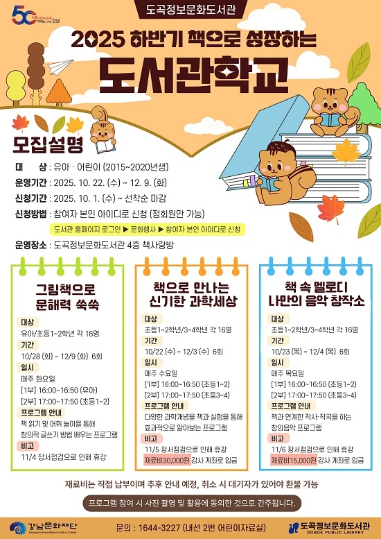 (Àç)°³²¹®ÈÀç´Ü(ÀÌ»çÀå ±èÁ¾¼·)ÀÌ ¿î¿µÇÏ´Â µµ°îÁ¤º¸¹®Èµµ¼°ü¿¡¼ À¯¾Æ ¹× ¾î¸°À̸¦ À§ÇÑ µ¶¼ ÇÁ·Î±×·¥ÀÎ 'Ã¥À¸·Î ¼ºÀåÇÏ´Â µµ¼°üÇб³'¸¦ 10¿ù 22ÀÏ(¼ö)ºÎÅÍ 12¿ù 9ÀÏ(È)±îÁö ¿î¿µÇÑ´Ù.