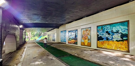À̹ø »ç¾÷Àº °³²µÑ·¹±æ ÀçÁ¤ºñ¿Í ¿¬°èÇØ ¾çÀçõÀÇ °¡Ä¡¸¦ ³ôÀ̰í, ½Ã¹Îµé¿¡°Ô ÄèÀûÇϸ鼵µ ¸Å·ÂÀûÀÎ °ø°£À» Á¦°øÇϱâ À§ÇØ ÃßÁøµÆ´Ù. ³ôÀÌ 4.9m, ±æÀÌ 41.7m ±Ô¸ðÀÇ ±³°¢ ÇϺΠº¸ÇàÅë·Î º®¸é¿¡ ‘·Ð°ÀÇ º°ÀÌ ºû³ª´Â ¹ã’, ‘¹ãÀÇ Ä«Æä Å׶󽺒, ‘ÇØ¹Ù¶ó±â’ µî °íÈåÀÇ ´ëÇ¥ÀÛ 7Á¡ÀÌ º®È·Î ÀçÇöµÆ´Ù. ´Ü¼øÇÑ Àå½ÄÀÌ ¾Æ´Ï¶ó, ÆäÀÎÆ®¿Í ŸÀÏÀ» °áÇÕÇÑ ¹æ½ÄÀ¸·Î ³»±¸¼º°ú ¿¹¼ú¼ºÀ» µ¿½Ã¿¡ »ì·È´Ù.