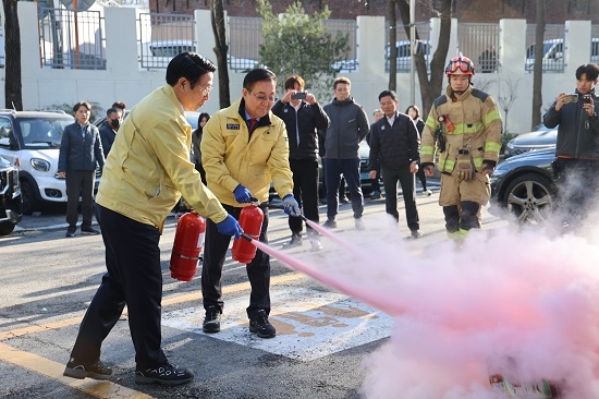 ÀÌ ³¯ ÈÆ·ÃÀº °ø´Ü ÀÓÁ÷¿ø, ³ëÀκ¹Áö°ü Á÷¿ø, ±¸Ã» Á÷¿ø, ÁÖ¹Î(³»¹æ°í°´) µî ÃÑ 123¸íÀÌ Âü¿©Çß´Ù. ƯÈ÷ °³²¼Ò¹æ¼ ¿¹¹æ°ú ¹× »ï¼º119¾ÈÀü¼¾ÅÍ ¼Ò¹æ°ü 5¸íÀÌ ¼Ò¹æÂ÷ 1´ë¸¦ µ¿¿øÇÏ¿´À¸¸ç, ½ÇÁ¦ ÈÀç»óȲ Á¶¼º ¹× ÈÀçÁø¾Ð ½Ã¿¬À¸·Î ÈÆ·ÃÀÇ ¾ÈÀü¼º°ú ½ÇÈ¿¼ºÀ» ³ô¿´´Ù.