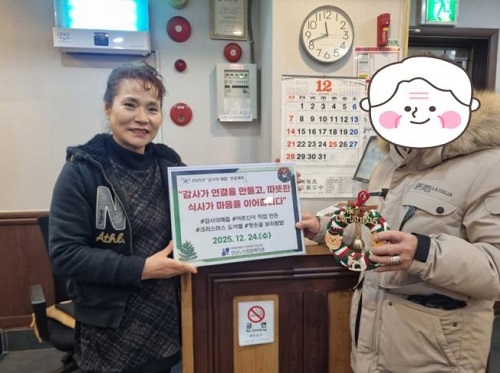 °³²³ëÀÎÁ¾ÇÕº¹Áö°ü(°üÀå °í¿µÇÑ)Àº 2025³â 12¿ù 24ÀÏ(¼ö), º¹Áö°ü Àç°¡ ¾î¸£½ÅµéÀÌ ¾ç¸»¸ñÀ¸·Î Á÷Á¢ ¸¸µç Å©¸®½º¸¶½º µµ¾îº§ 20°³¸¦ û¼ý°ñ º¸¸®¹ä¿¡ Àü´ÞÇß´Ù. À̹ø Àü´ÞÀº º¹Áö°ü ÀÚü ÇÁ·Î±×·¥ÀÎ ‘°¨»çÀÇ ¸Åµì’ÀÇ ¿©¼¸ ¹øÂ° ³ª´®À¸·Î, ¾î¸£½ÅµéÀÌ ±×µ¿¾È µµ¿òÀ» ¹Þ¾Æ¿Â ÈÄ¿øÃ³¿¡ °¨»çÀÇ ¸¶À½À» Á÷Á¢ Ç¥ÇöÇϰíÀÚ ¸¶·ÃµÇ¾ú´Ù. û¼ý°ñ º¸¸®¹äÀº 2020³âºÎÅÍ º¹Áö°üÀÇ Ãë¾à°èÃþ ¾î¸£½ÅµéÀÇ Æ¯º°ÇÑ ½Ä»ç¸¦ À§ÇØ ¸Å¿ù »ý½ÅÀÜÄ¡ ½Ä»ç¸¦ ²ÙÁØÈ÷ ÈÄ¿øÇØ ¿Â Áö¿ª»çȸ Çù·Â ±â°üÀ¸·Î, ¾î¸£½Åµé¿¡°Ô µû¶æÇÑ ±â¾ï°ú Á¤À» ÀüÇØ¿Â °÷ÀÌ´Ù.