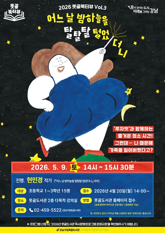ÇØ´ç ÇÁ·Î±×·¥Àº 4¿ù 20ÀÏ(¿ù) ¿ÀÈÄ 2½ÃºÎÅÍ °³²±¸¸³¸ø°ñµµ¼°ü ȨÆäÀÌÁö¿¡¼ Á÷Á¢ ½ÅûÇÒ ¼ö ÀÖ´Ù. ÇÁ·Î±×·¥ °ü·Ã ÀÚ¼¼ÇÑ »çÇ×Àº °³²±¸¸³¸ø°ñµµ¼°ü ȨÆäÀÌÁö(https://library.gangnam.go.kr/mglib)¸¦ Âü°íÇϰųª Àüȹ®ÀÇ(02-459-5522)¸¦ ÅëÇØ È®ÀÎÇÒ ¼ö ÀÖ´Ù. < ÀúÀÛ±ÇÀÚ © °³²½Å¹® ¹«´ÜÀüÀç ¹× Àç¹èÆ÷±ÝÁö >
